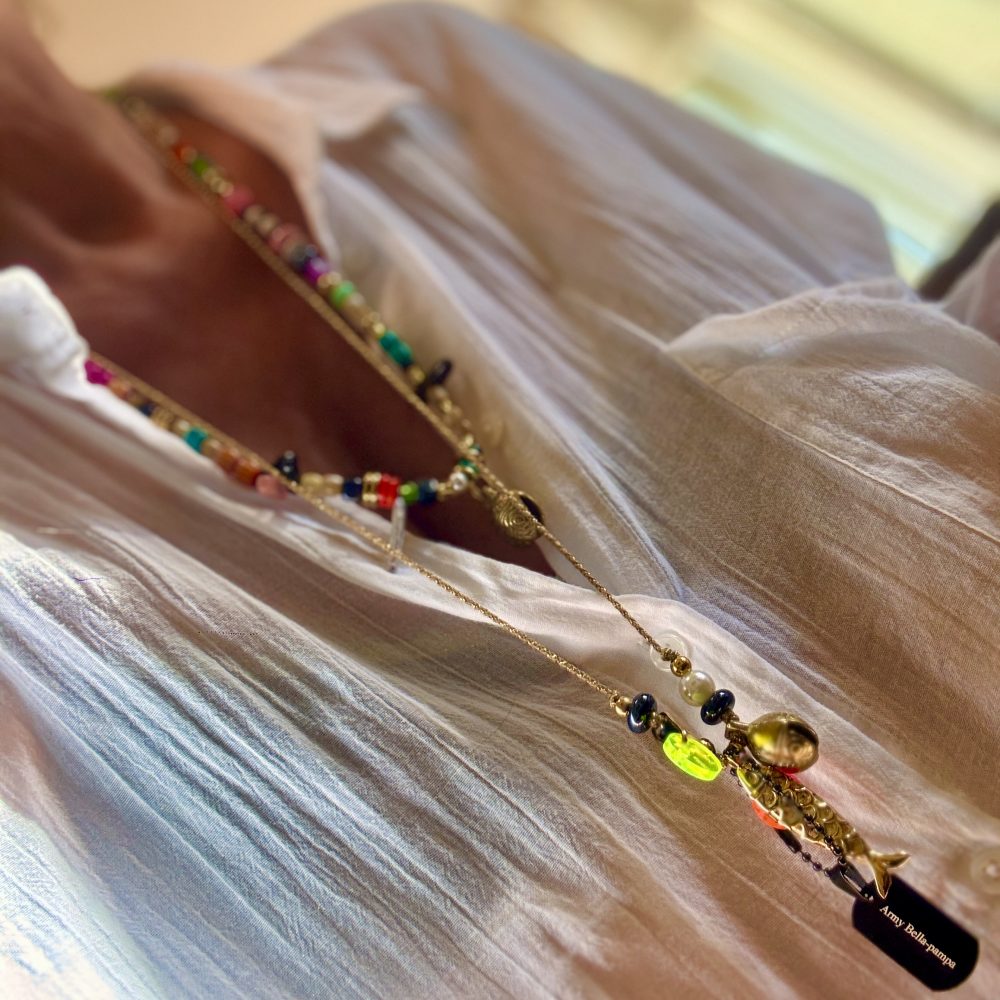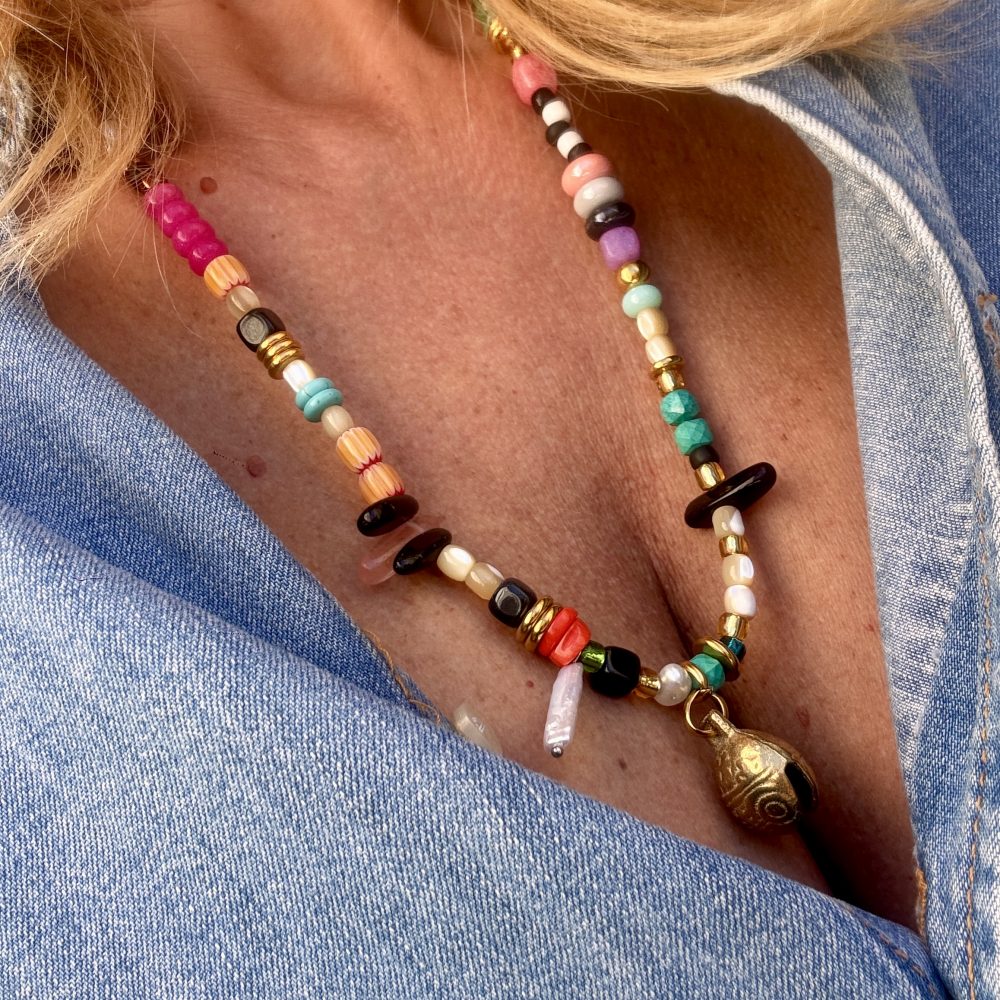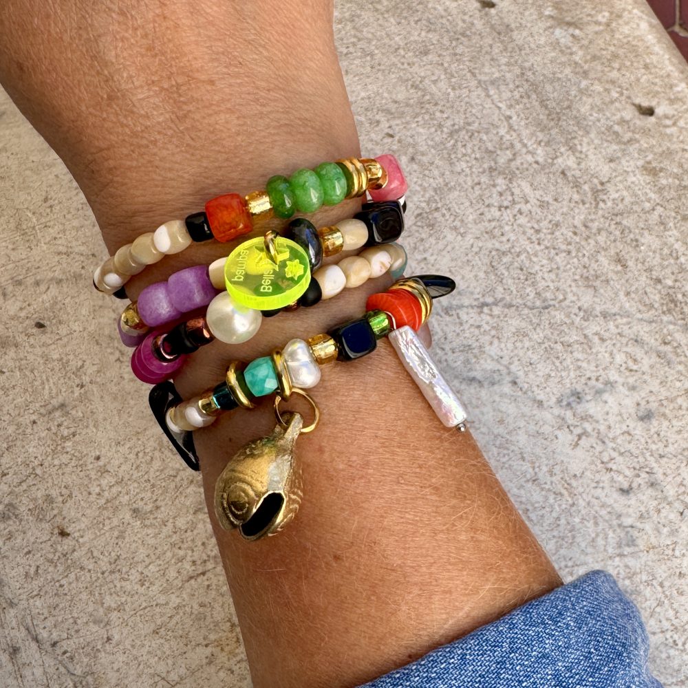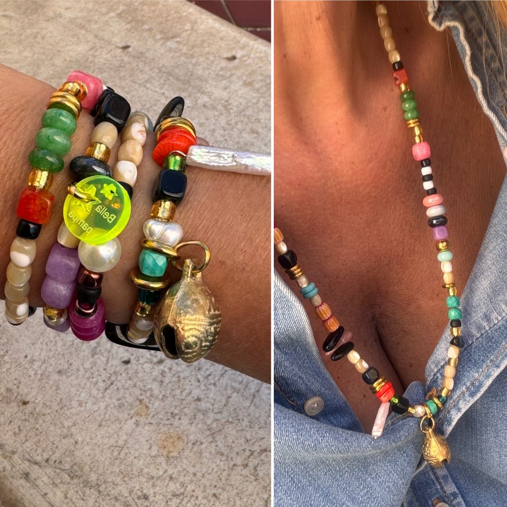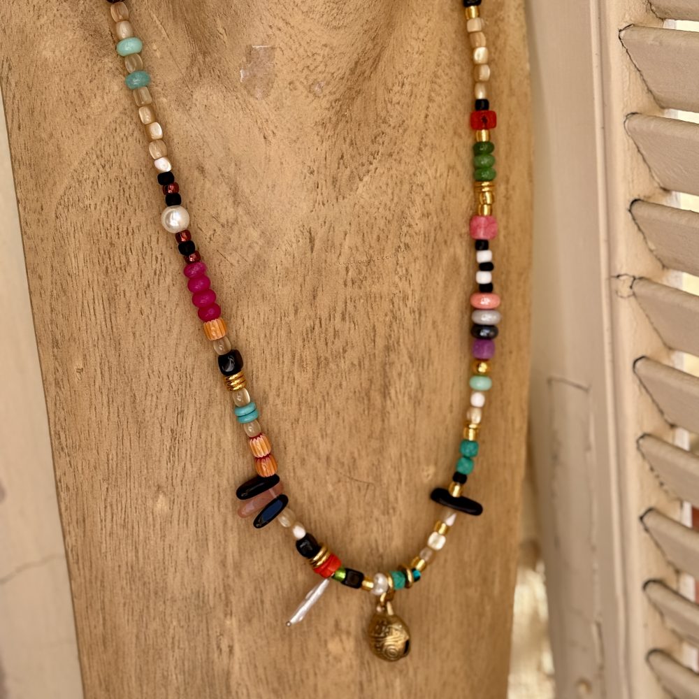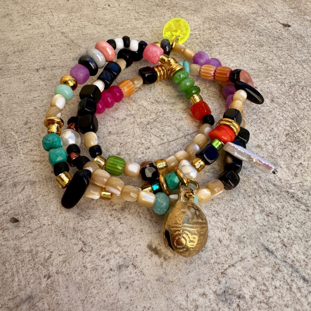 BARTHY COLLIER OU BRACELET 4 TOURS, ELASTIQUE MÉLANGES DE PERLES COLORÉES, GRELOT