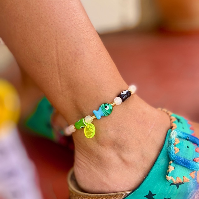 BIJOUX DE CHEVILLE MARCELLO, PERLE POISSON ET OEIL.