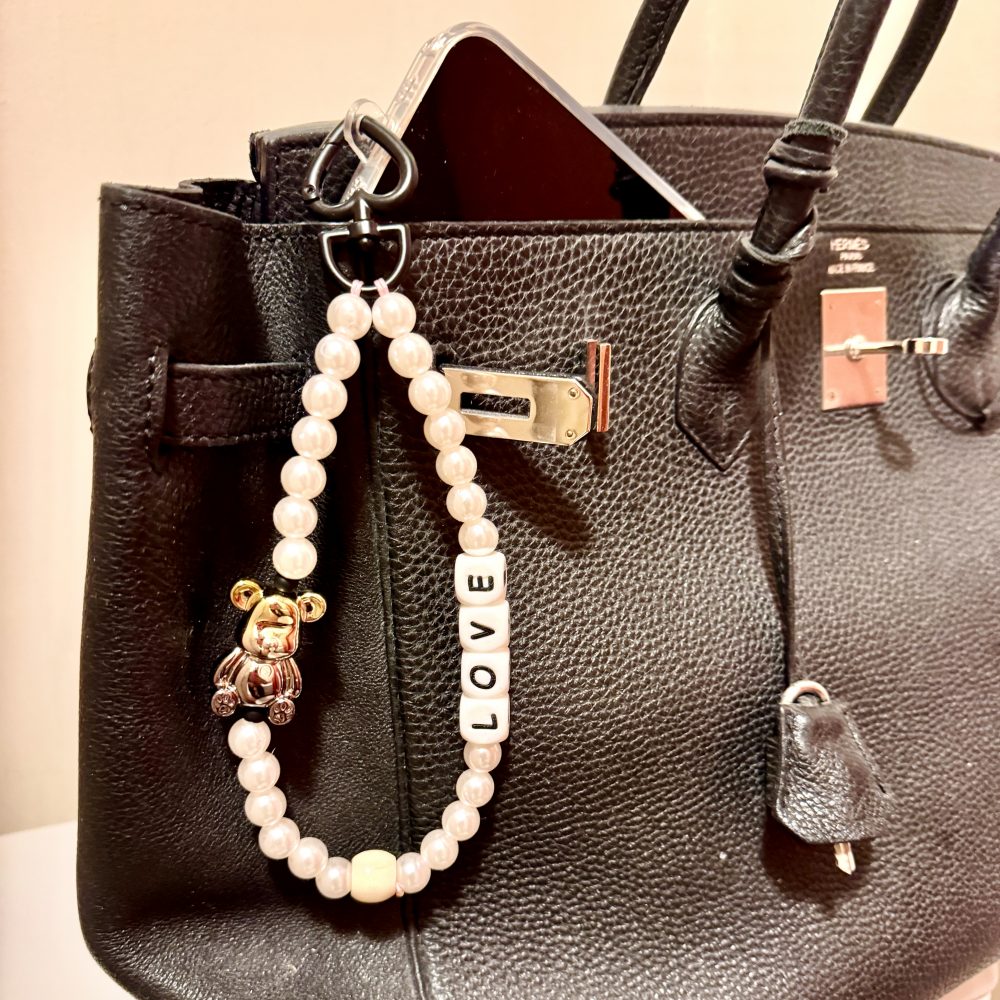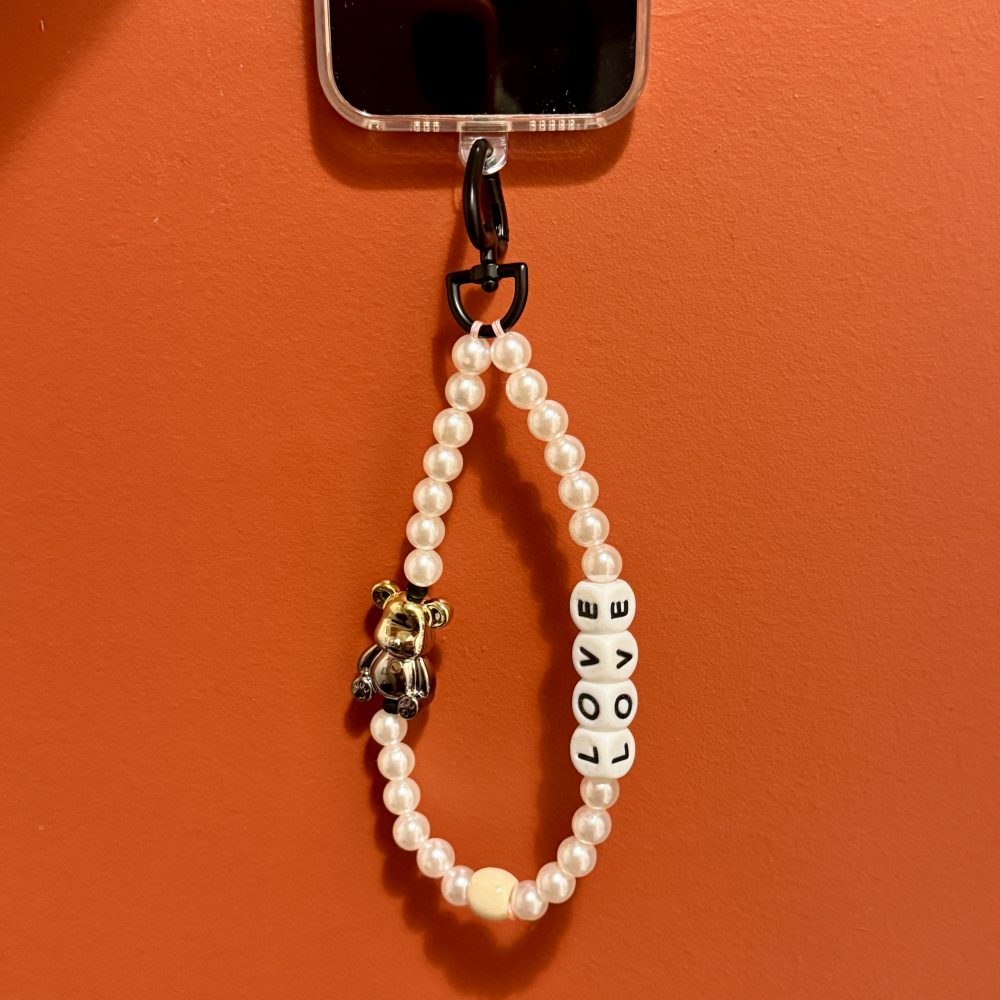 BIJOU DE TÉLÉPHONE MARADONA, MESSAGE LOVE, OURSONS 6 COULEURS AUX CHOIX, PERLES DE CULTURE FANTAISIE.