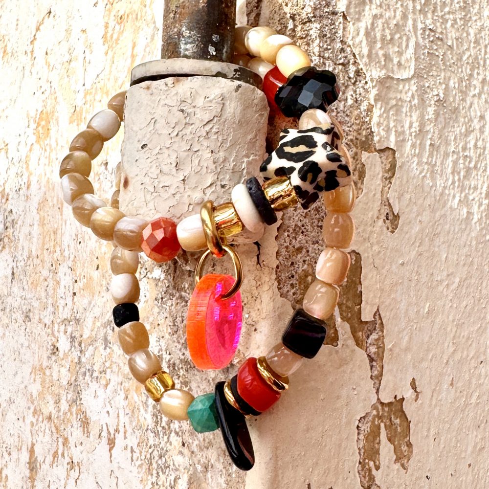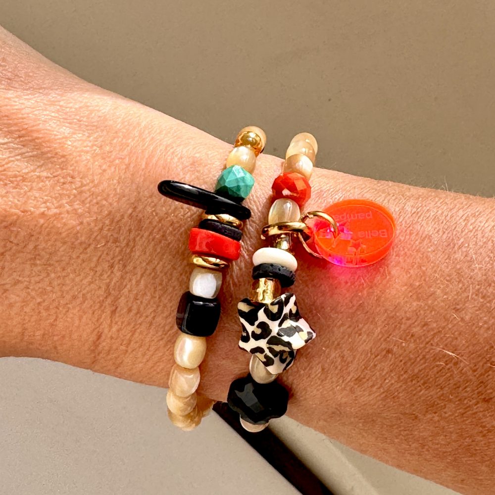 BRACELET ELASTIQUE DOUBLE TOUR ETHAN, ÉTOILE LEOPARD, PIERRES MULTICOLORE SEMI-PRECIEUSES