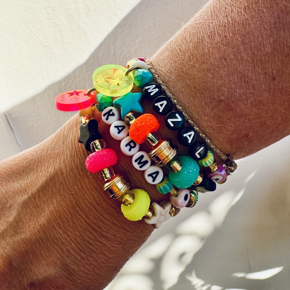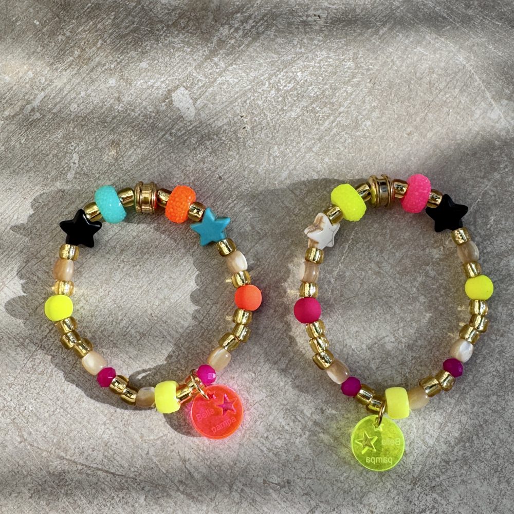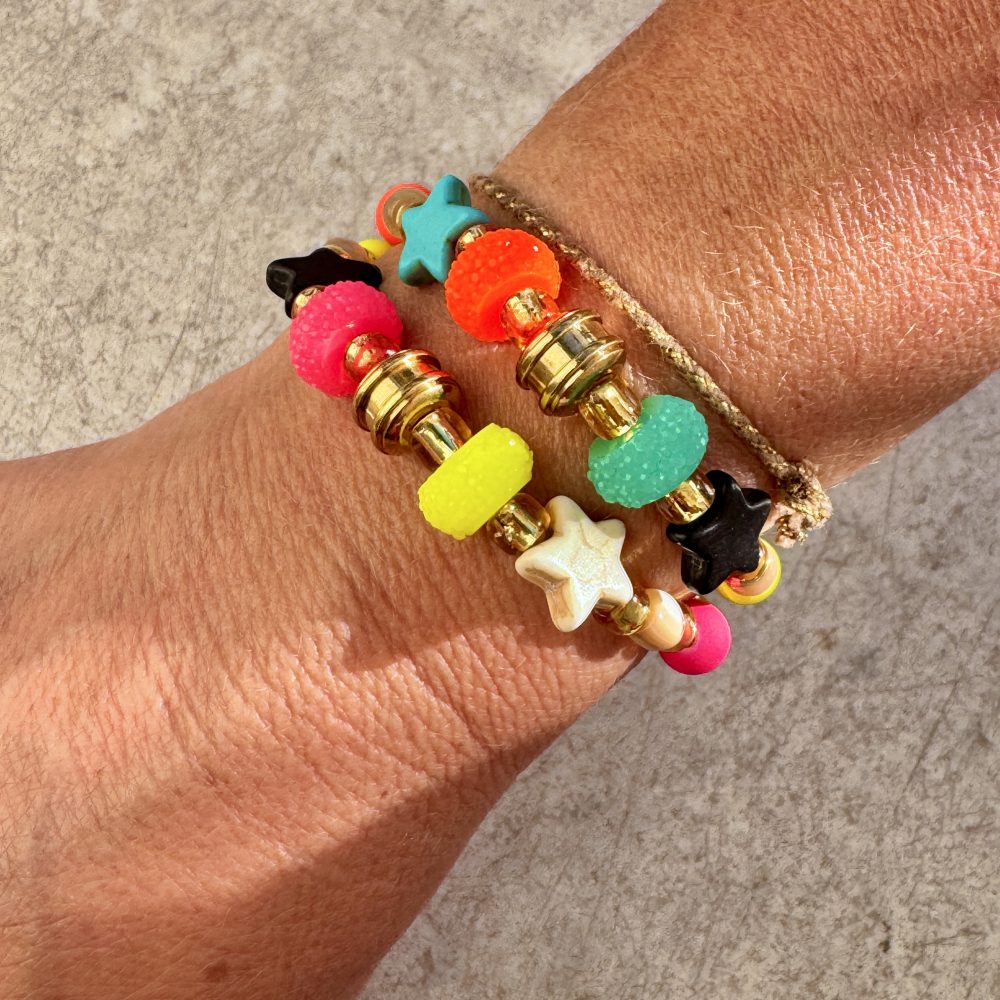 Avec son mélange audacieux de perles fluo éclatantes et d’étoiles scintillantes, ce qui apporte une touche de lumière et de joie a chaque poignet.