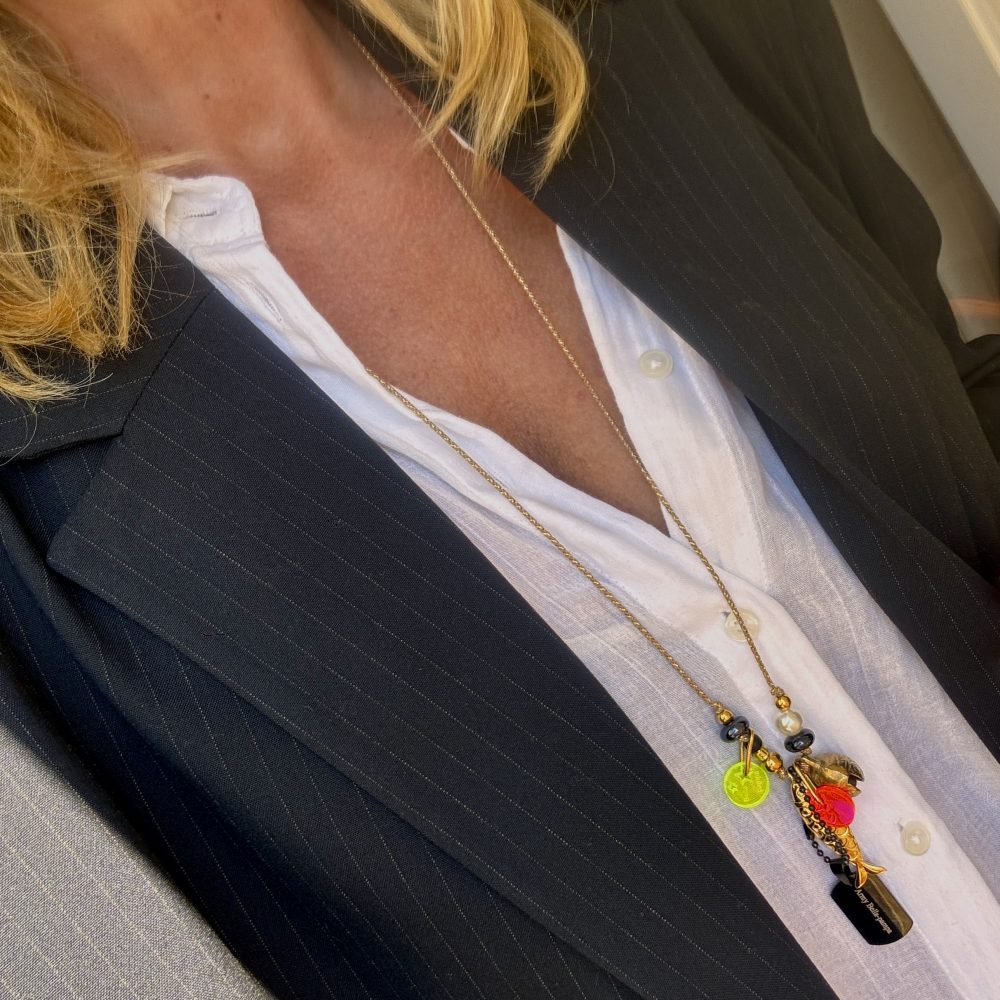 Charms, Bella-pampa rose et jaune fluo nom de la créatrice Bella-pampa.