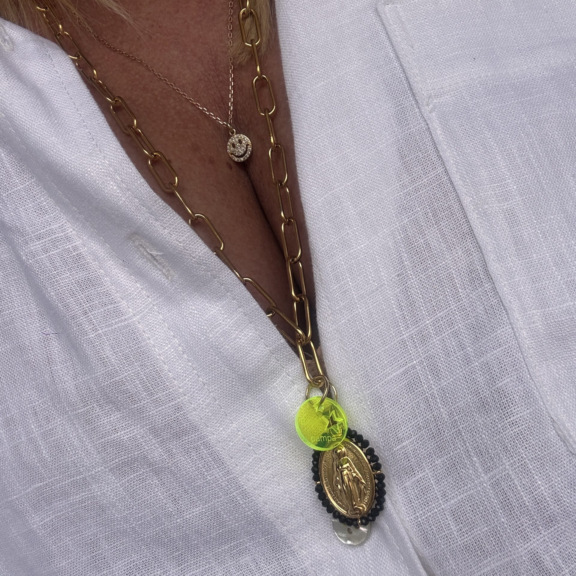 SAUTOIR MADONE FIRENZE, CHAINE EN ACIER INOXYDABLE, CHARM MADONE EN PERLES ROSE OU NOIRE